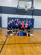 The Montague Lady Eagles battled through a long day of volleyball on Saturday, capturing the consolation championship at the Windthorst Tournament. With 7 of their 10 players in 6th or 7th grade, the Lady Eagles competed in the 7th-grade division against much larger schools.